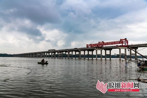 8月24日下午16时32分,随着一块40米左幅预制箱梁在架桥机的牵引下,稳稳落到预定位置,岚罗五标圆满完成沂河特大桥架设任务。